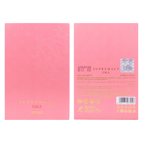 Supremacy Gala by Afnan is a women's fragrance, launched in 2023. It belongs to the Oriental Floral aromatic family, offering a bright, creamy, and gourmand character that works effectively for daytime elegance and cozy evenings.