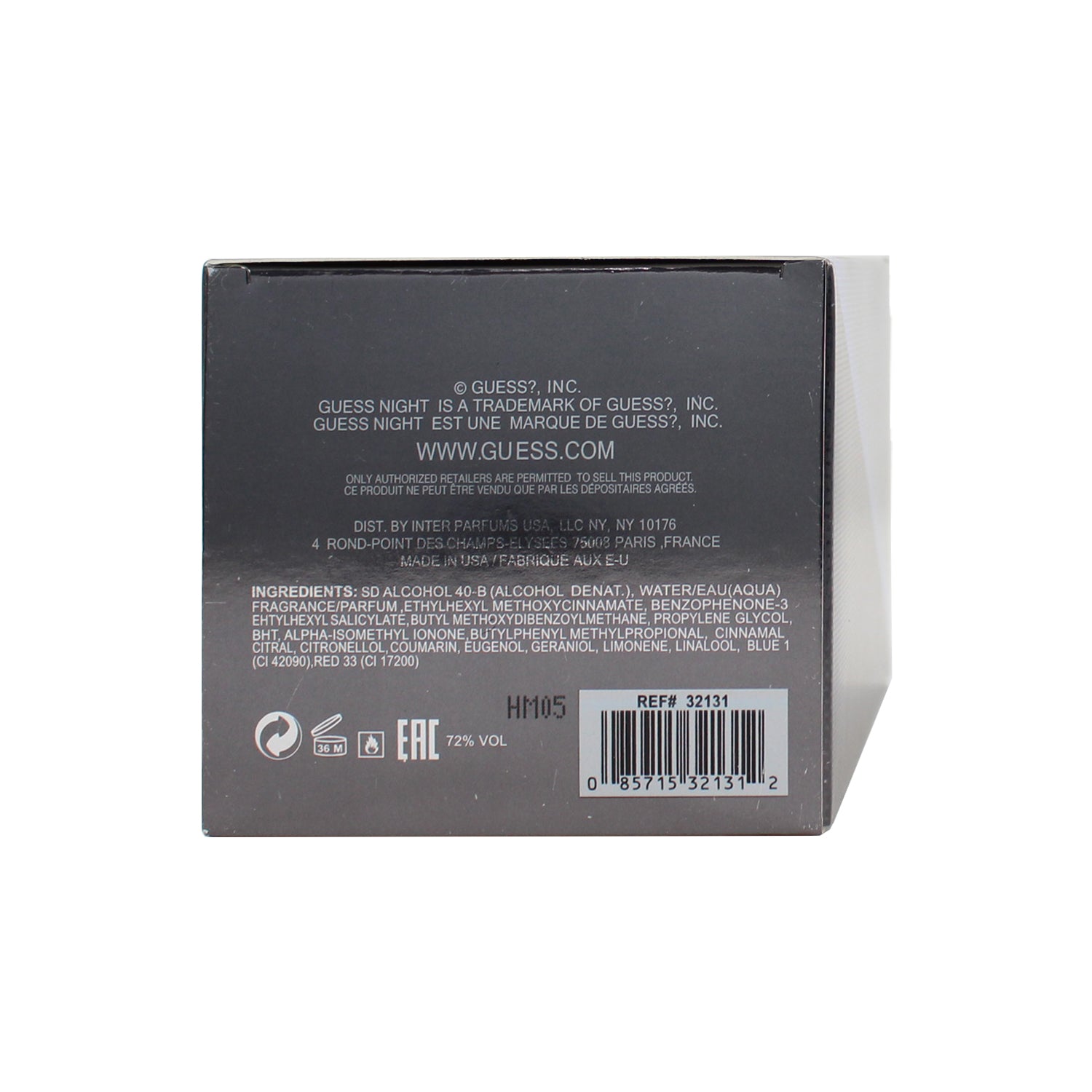Guess Night by Guess Cologne. Guess Night, introduced in 2013, is a woody scent designed for young, vibrant men. From the design house of Guess, this fragrance features top notes of hot pepper and juicy grapefruit and middle notes of cedar and vetiver. Wear Guess Night for a boost of confidence. This exciting fragrance is ideal for nights out with friends, and it creates a lasting impression when you walk into a room. This fragrance is recommended for night wear.