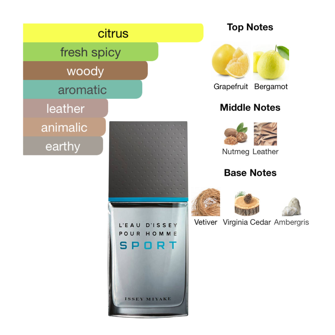 L'Eau d'Issey Pour Homme Sport by Issey Miyake is a Woody Aromatic fragrance for men, launched in 2012. It was created by Jacques Cavallier. This fragrance is designed to convey the emotions of sport—breath, energy, and adrenaline—expressed through an intense freshness of citrus and a deep woody structure.