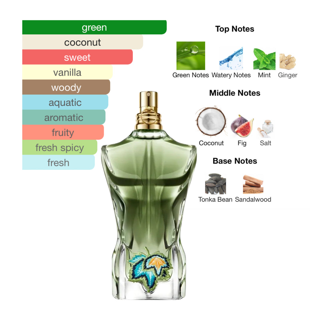 Le Beau Paradise Garden by Jean Paul Gaultier is a Woody Green Aquatic fragrance for men, launched in 2024. It was created by Quentin Bisch. This scent is inspired by a tropical haven, combining refreshing watery and green notes with a salty coconut heart to evoke the essence of a sun-drenched paradise.