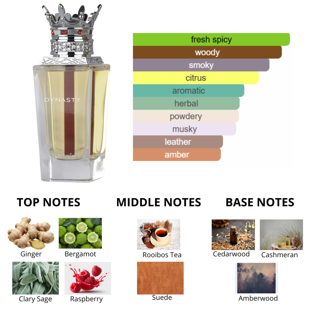 Dynasty by lattafa perfumes is a woody spicy fragrance for women and men. this is a new fragrance. dynasty was launched in 2025.the nose behind this fragrance is alex lee.