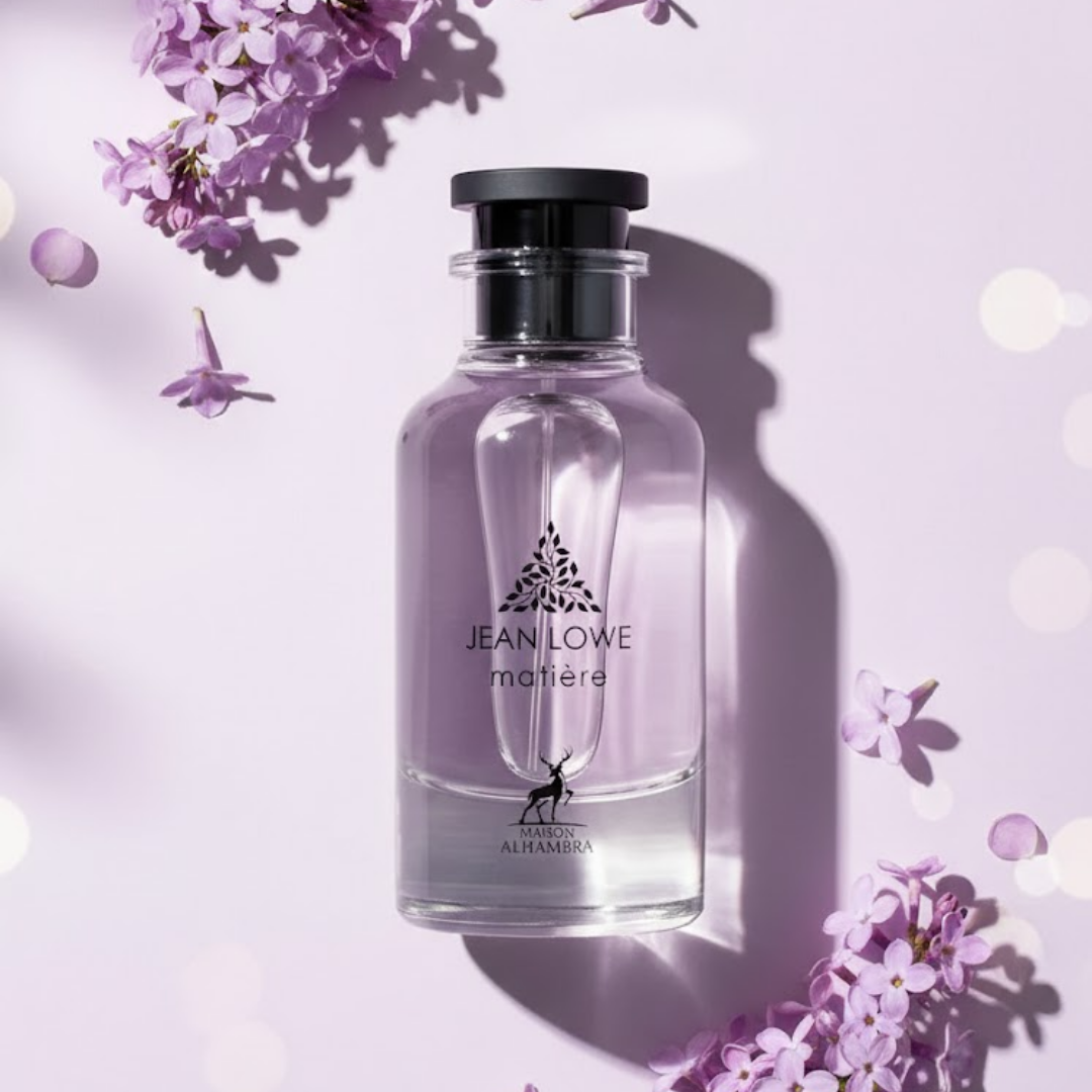 Jean Lowe Matière by Maison Alhambra is a Floral fragrance for unisex use launched in 2022. This scent is characterized by its rose, oud, patchouli, and amber accords, resulting in a deep, elegant, and sophisticated aroma. It opens with a clean, slightly powdery floral energy that transitions into a jammy rose heart, eventually settling into a dark, woody base with a touch of earthy incense.